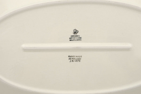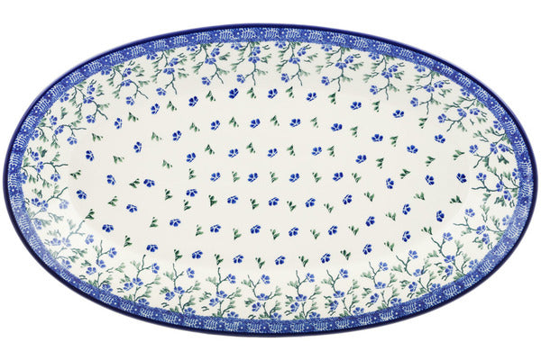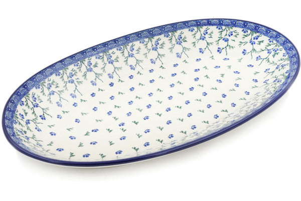 This Cascading Blue Blossoms 18" Platter was handmade and hand decorated in Boleslawiec, Poland by skilled artisans according to old traditional methods. This Polish stoneware is microwave, dishwasher, freezer, and oven safe up to 480°F. It does not contain lead or cadmium. It is part of the Cascading Blue Blossoms Collection.