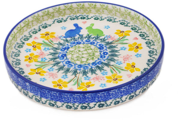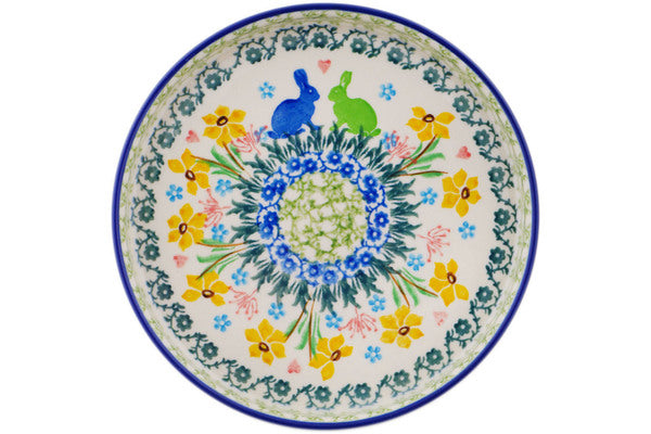 This Hopping In Love 6" Platter was handmade and hand decorated in Boleslawiec, Poland by skilled artisans according to old traditional methods. This Polish stoneware is microwave, dishwasher, freezer, and oven safe up to 480°F. It does not contain lead or cadmium. It is part of the Hopping In Love Collection.