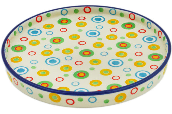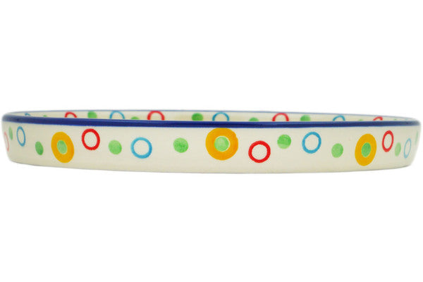 This Retro Olives 8" Platter was handmade and hand decorated in Boleslawiec, Poland by skilled artisans according to old traditional methods. This is a Polish pottery Signature Unikat, which means that it has been hand painted with both sponges and brushes and it is signed by the artist who painted it. Unikat pieces are the most intricate works of art. Larger Unikat items take hours of very careful work to finish. This Polish stoneware is microwave, dishwasher, freezer, and oven safe up to 480°F. It does not contain lead or cadmium. It is part of the Retro Olives Collection.