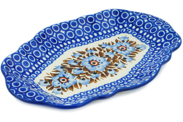 This Brown And Blue Beauty 9" Platter was handmade and hand decorated in Boleslawiec, Poland by skilled artisans according to old traditional methods. This is a Polish pottery Signature Unikat, which means that it has been hand painted with both sponges and brushes and it is signed by the artist who painted it. Unikat pieces are the most intricate works of art. Larger Unikat items take hours of very careful work to finish. This Polish stoneware is microwave, dishwasher, freezer, and oven safe up to 480°F. It does not contain lead or cadmium. It is part of the Brown And Blue Beauty Collection.