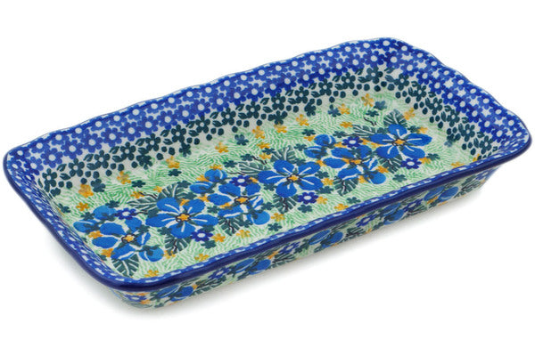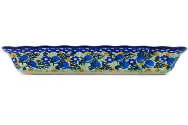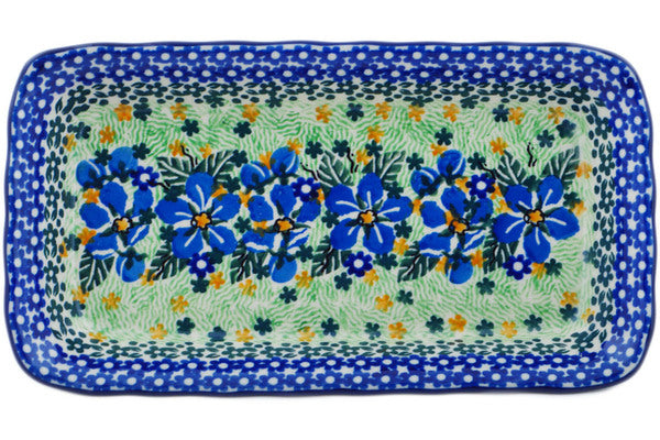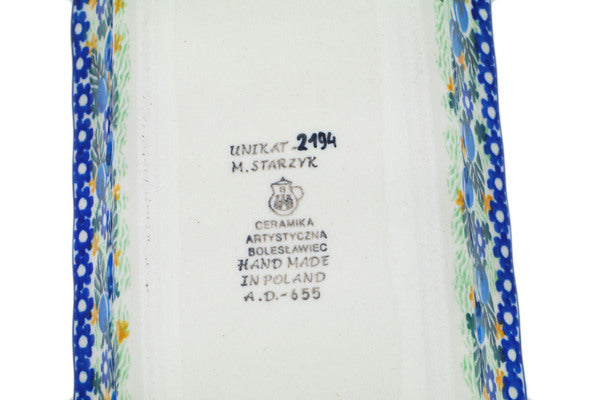 This Floral Blue Dreams 9" Platter was handmade and hand decorated in Boleslawiec, Poland by skilled artisans according to old traditional methods. This is a Polish pottery Signature Unikat, which means that it has been hand painted with both sponges and brushes and it is signed by the artist who painted it. Unikat pieces are the most intricate works of art. Larger Unikat items take hours of very careful work to finish. This Polish stoneware is microwave, dishwasher, freezer, and oven safe up to 480°F. It does not contain lead or cadmium. It is part of the Floral Blue Dreams Collection.