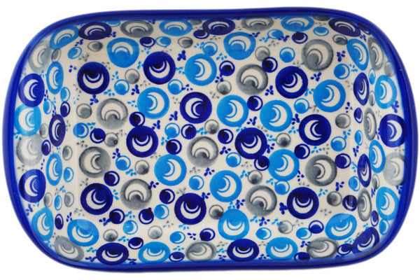 This Blue Peacock Eye 10" Platter with Handles was handmade and hand decorated in Boleslawiec, Poland by skilled artisans according to old traditional methods. This Polish stoneware is microwave, dishwasher, freezer, and oven safe up to 480°F. It does not contain lead or cadmium. It is part of the Blue Peacock Eye Collection.