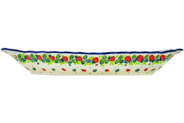 This Berry Burst 16" Platter with Handles was handmade and hand decorated in Boleslawiec, Poland by skilled artisans according to old traditional methods. This Polish stoneware is microwave, dishwasher, freezer, and oven safe up to 480°F. It does not contain lead or cadmium. It is part of the Berry Burst Collection.