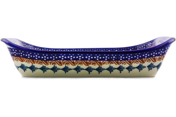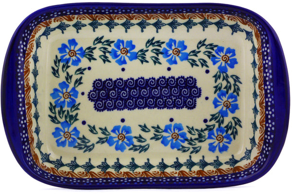 This Blue Cornflower 9" Platter with Handles was handmade and hand decorated in Boleslawiec, Poland by skilled artisans according to old traditional methods. This Polish stoneware is microwave, dishwasher, freezer, and oven safe up to 480°F. It does not contain lead or cadmium. It is part of the Blue Cornflower Collection.