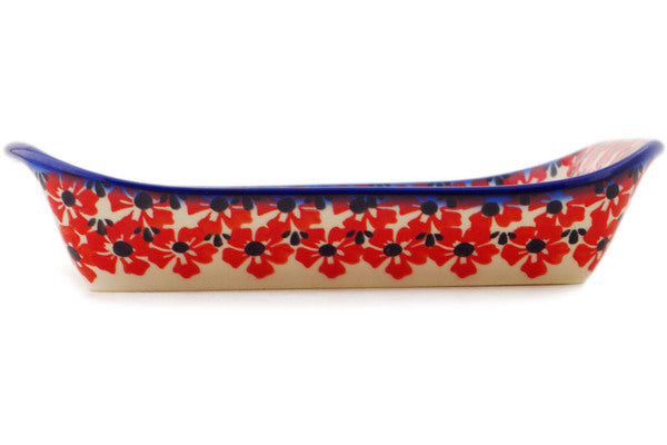 This Hawaiian Bliss 9" Platter with Handles was handmade and hand decorated in Boleslawiec, Poland by skilled artisans according to old traditional methods. This Polish stoneware is microwave, dishwasher, freezer, and oven safe up to 480°F. It does not contain lead or cadmium. It is part of the Hawaiian Bliss Collection.