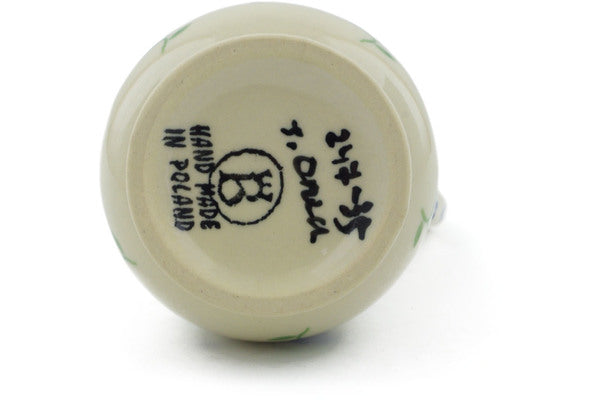 This Blue Bursts 5 oz Bottle was handmade and hand decorated in Boleslawiec, Poland by skilled artisans according to old traditional methods. This Polish stoneware is microwave, dishwasher, freezer, and oven safe up to 480°F. It does not contain lead or cadmium. It is part of the Blue Bursts Collection.