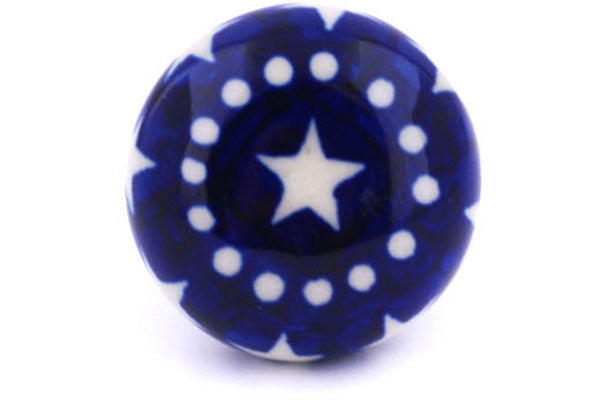 This Midnight Stars 1" Drawer knob 1-1/2 inch was handmade and hand decorated in Boleslawiec, Poland by skilled artisans according to old traditional methods. This Polish stoneware is microwave, dishwasher, freezer, and oven safe up to 480°F. It does not contain lead or cadmium. It is part of the Midnight Stars Collection.
