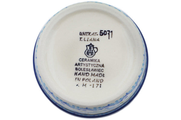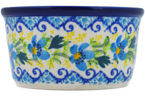 This Delightful Day Small Ramekin Bowl was handmade and hand decorated in Boleslawiec, Poland by skilled artisans according to old traditional methods. This is a Polish pottery Signature Unikat, which means that it has been hand painted with both sponges and brushes and it is signed by the artist who painted it. Unikat pieces are the most intricate works of art. Larger Unikat items take hours of very careful work to finish. This Polish stoneware is microwave, dishwasher, freezer, and oven safe up to 480°F. It does not contain lead or cadmium. It is part of the Delightful Day Collection.