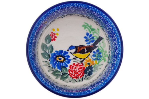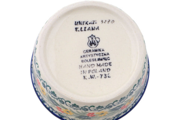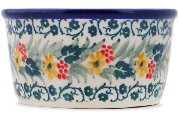 This In The Garden Small Ramekin Bowl was handmade and hand decorated in Boleslawiec, Poland by skilled artisans according to old traditional methods. This is a Polish pottery Signature Unikat, which means that it has been hand painted with both sponges and brushes and it is signed by the artist who painted it. Unikat pieces are the most intricate works of art. Larger Unikat items take hours of very careful work to finish. This Polish stoneware is microwave, dishwasher, freezer, and oven safe up to 480°F. It does not contain lead or cadmium. It is part of the In The Garden Collection.