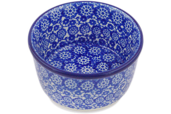 This Wagon Wheel Small Ramekin Bowl was handmade and hand decorated in Boleslawiec, Poland by skilled artisans according to old traditional methods. This Polish stoneware is microwave, dishwasher, freezer, and oven safe up to 480°F. It does not contain lead or cadmium. It is part of the Wagon Wheel Collection.