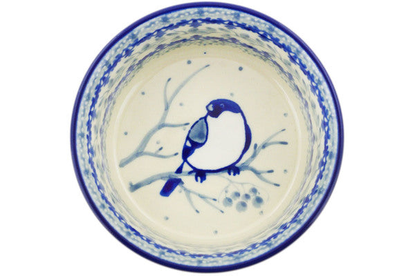 This Waiting Birds Small Ramekin Bowl was handmade and hand decorated in Boleslawiec, Poland by skilled artisans according to old traditional methods. This is a Polish pottery Signature Unikat, which means that it has been hand painted with both sponges and brushes and it is signed by the artist who painted it. Unikat pieces are the most intricate works of art. Larger Unikat items take hours of very careful work to finish. This Polish stoneware is microwave, dishwasher, freezer, and oven safe up to 480°F. It does not contain lead or cadmium. It is part of the Waiting Birds Collection.