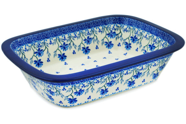 This Blue Grapevine 10" Rectangular Baker was handmade and hand decorated in Boleslawiec, Poland by skilled artisans according to old traditional methods. This Polish stoneware is microwave, dishwasher, freezer, and oven safe up to 480°F. It does not contain lead or cadmium. It is part of the Blue Grapevine Collection.