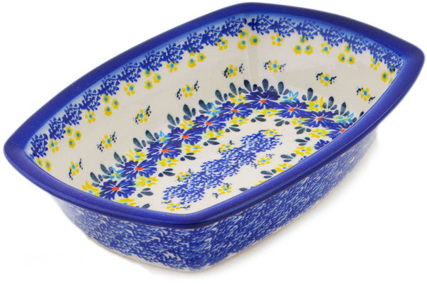 This Cornflower Meadow 10" Rectangular Baker was handmade and hand decorated in Boleslawiec, Poland by skilled artisans according to old traditional methods. This Polish stoneware is microwave, dishwasher, freezer, and oven safe up to 480°F. It does not contain lead or cadmium. It is part of the Cornflower Meadow Collection.
