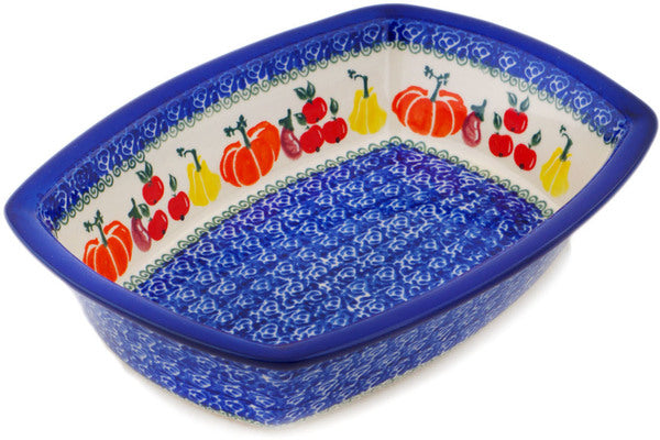 This Fresh Vegetable Garden 10" Rectangular Baker was handmade and hand decorated in Boleslawiec, Poland by skilled artisans according to old traditional methods. This Polish stoneware is microwave, dishwasher, freezer, and oven safe up to 480°F. It does not contain lead or cadmium. It is part of the Fresh Vegetable Garden Collection.