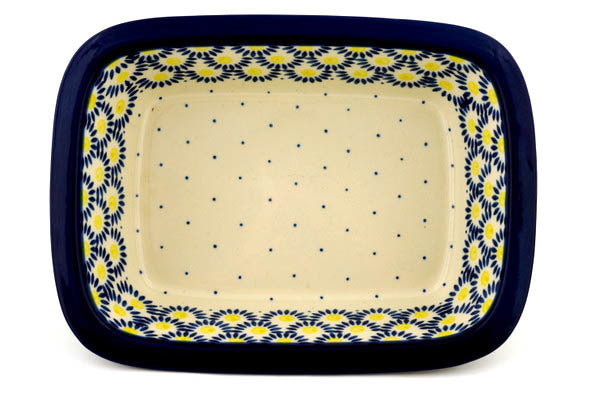 This Radient Scales 10" Rectangular Baker was handmade and hand decorated in Boleslawiec, Poland by skilled artisans according to old traditional methods. This Polish stoneware is microwave, dishwasher, freezer, and oven safe up to 480°F. It does not contain lead or cadmium. It is part of the Radient Scales Collection.