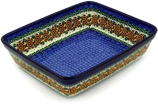 This Brown Flower Swirl 11" Rectangular Baker was handmade and hand decorated in Boleslawiec, Poland by skilled artisans according to old traditional methods. This Polish stoneware is microwave, dishwasher, freezer, and oven safe up to 480°F. It does not contain lead or cadmium. It is part of the Brown Flower Swirl Collection.