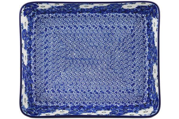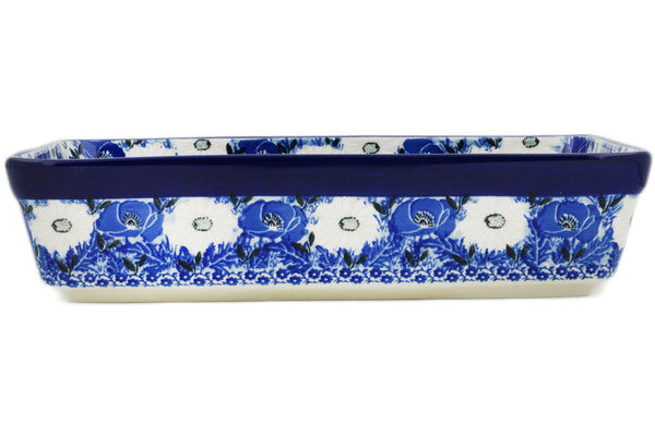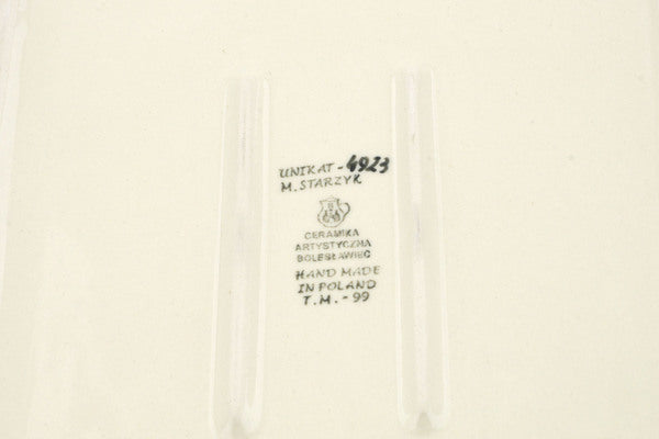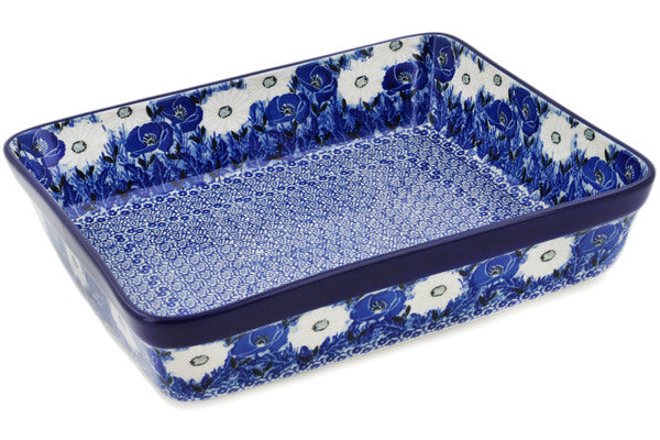 This Dancing In The Rain 12" Rectangular Baker was handmade and hand decorated in Boleslawiec, Poland by skilled artisans according to old traditional methods. This is a Polish pottery Signature Unikat, which means that it has been hand painted with both sponges and brushes and it is signed by the artist who painted it. Unikat pieces are the most intricate works of art. Larger Unikat items take hours of very careful work to finish. This Polish stoneware is microwave, dishwasher, freezer, and oven safe up to 480°F. It does not contain lead or cadmium. It is part of the Dancing In The Rain Collection.