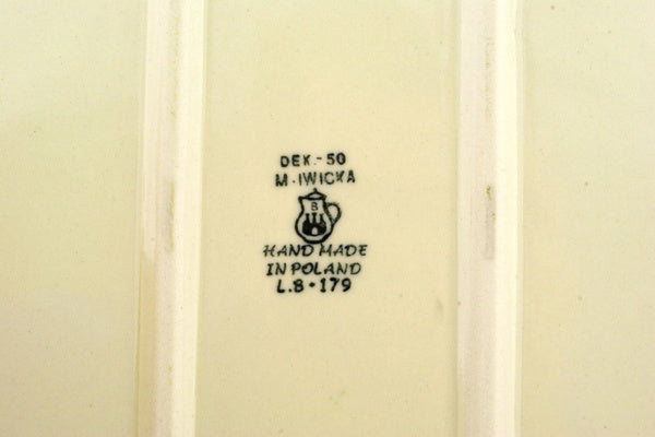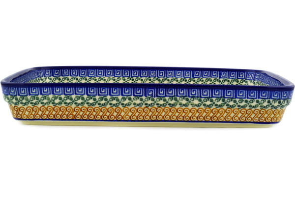 This Grecian Sea 12" Rectangular Baker was handmade and hand decorated in Boleslawiec, Poland by skilled artisans according to old traditional methods. This Polish stoneware is microwave, dishwasher, freezer, and oven safe up to 480°F. It does not contain lead or cadmium. It is part of the Grecian Sea Collection.