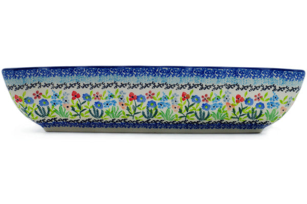 This Spring Essence 12" Rectangular Baker was handmade and hand decorated in Boleslawiec, Poland by skilled artisans according to old traditional methods. This is a Polish pottery Signature Unikat, which means that it has been hand painted with both sponges and brushes and it is signed by the artist who painted it. Unikat pieces are the most intricate works of art. Larger Unikat items take hours of very careful work to finish. This Polish stoneware is microwave, dishwasher, freezer, and oven safe up to 480°F. It does not contain lead or cadmium. It is part of the Spring Essence Collection.
