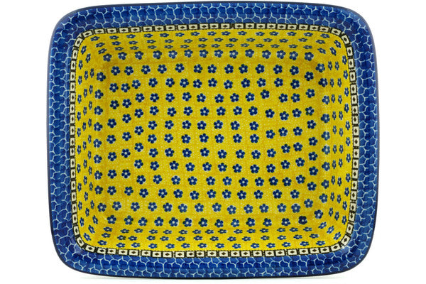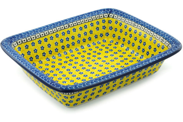 This Sunburst Daisies 12" Rectangular Baker was handmade and hand decorated in Boleslawiec, Poland by skilled artisans according to old traditional methods. This Polish stoneware is microwave, dishwasher, freezer, and oven safe up to 480°F. It does not contain lead or cadmium. It is part of the Sunburst Daisies Collection.