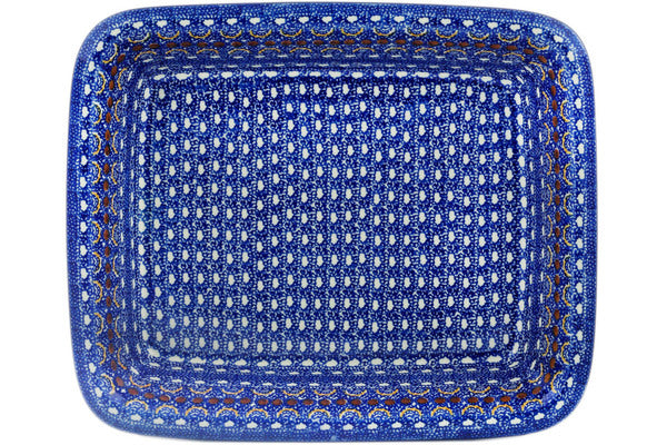 This Blue Horizons 14" Rectangular Baker was handmade and hand decorated in Boleslawiec, Poland by skilled artisans according to old traditional methods. This Polish stoneware is microwave, dishwasher, freezer, and oven safe up to 480°F. It does not contain lead or cadmium. It is part of the Blue Horizons Collection.