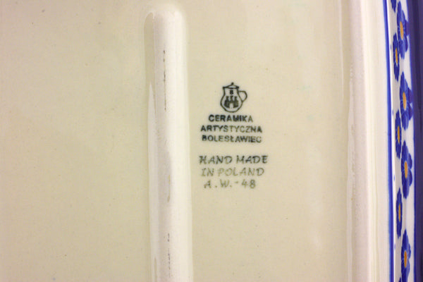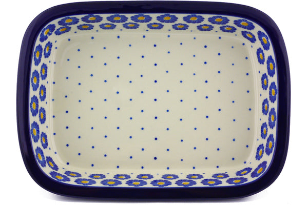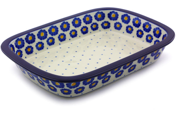 This Blue Zinnia 10-inch Rectangular Baker with Grip Lip was handmade and hand decorated in Boleslawiec, Poland by skilled artisans according to old traditional methods. This Polish stoneware is microwave, dishwasher, freezer, and oven safe up to 480°F. It does not contain lead or cadmium. It is part of the Blue Zinnia Collection.