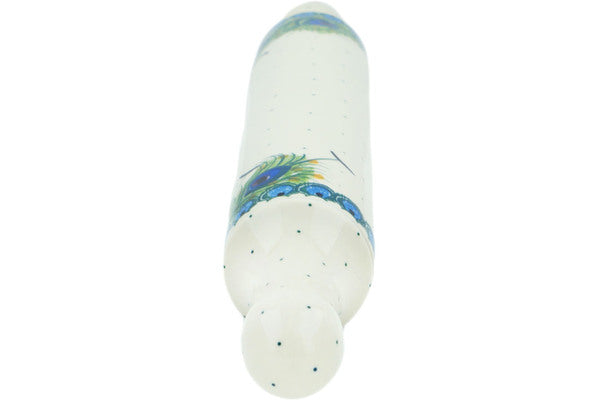 This Majestic Peacock 18" Rolling Pin was handmade and hand decorated in Boleslawiec, Poland by skilled artisans according to old traditional methods. This Polish stoneware is microwave, dishwasher, freezer, and oven safe up to 480°F. It does not contain lead or cadmium. It is part of the Majestic Peacock Collection.