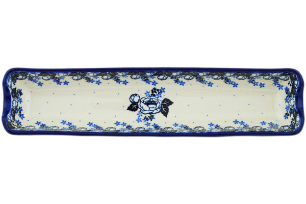 This Flowers At Dusk 13" Rolling Pin Cradle was handmade and hand decorated in Boleslawiec, Poland by skilled artisans according to old traditional methods. This Polish stoneware is microwave, dishwasher, freezer, and oven safe up to 480°F. It does not contain lead or cadmium. It is part of the Flowers At Dusk Collection.