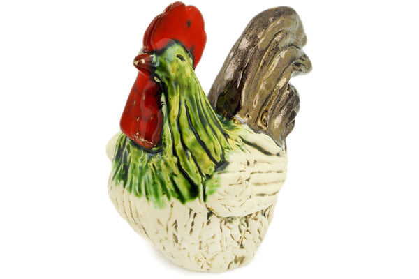 This Green 8" Rooster Figurine was handmade and hand decorated in Boleslawiec, Poland by skilled artisans according to old traditional methods. This Polish stoneware is microwave, dishwasher, freezer, and oven safe up to 480°F. It does not contain lead or cadmium. It is part of the Green Collection.
