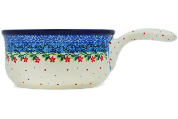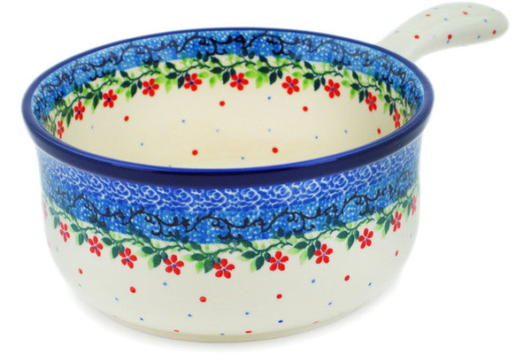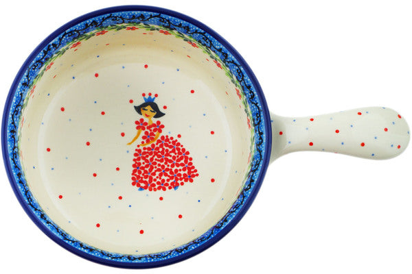 This Princess In A Red Dress 10" Round Baker with Handles was handmade and hand decorated in Boleslawiec, Poland by skilled artisans according to old traditional methods. This Polish stoneware is microwave, dishwasher, freezer, and oven safe up to 480°F. It does not contain lead or cadmium. It is part of the Princess In A Red Dress Collection.