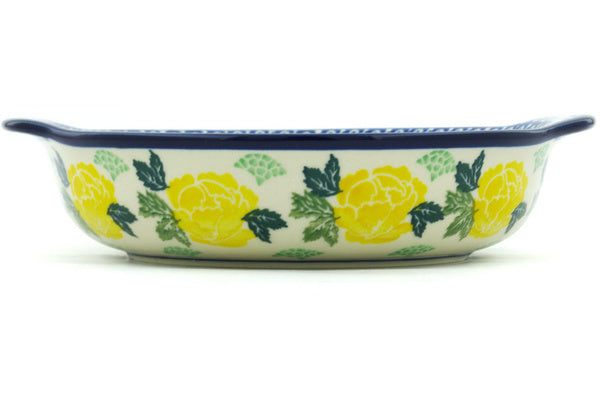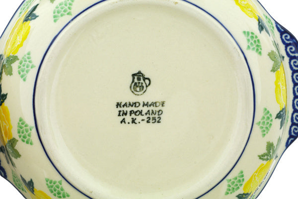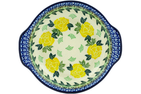 This Yellow Rose 7" Round Baker with Handles was handmade and hand decorated in Boleslawiec, Poland by skilled artisans according to old traditional methods. This Polish stoneware is microwave, dishwasher, freezer, and oven safe up to 480°F. It does not contain lead or cadmium. It is part of the Yellow Rose Collection.