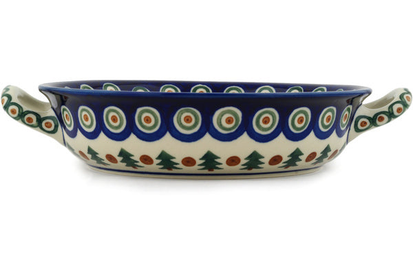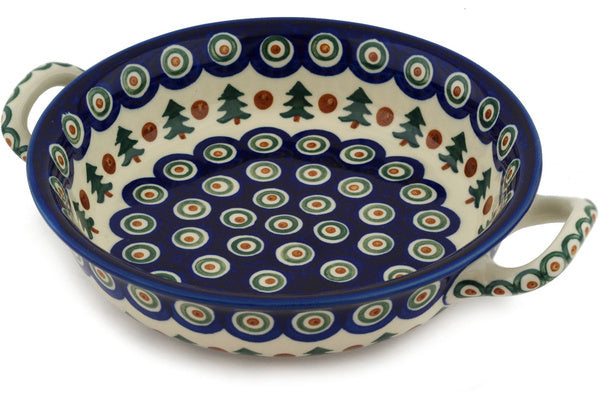 This Cranberries And Evergree Medium Round Baker with Handles was handmade and hand decorated in Boleslawiec, Poland by skilled artisans according to old traditional methods. This Polish stoneware is microwave, dishwasher, freezer, and oven safe up to 480°F. It does not contain lead or cadmium. It is part of the Cranberries And Evergree Collection.