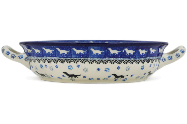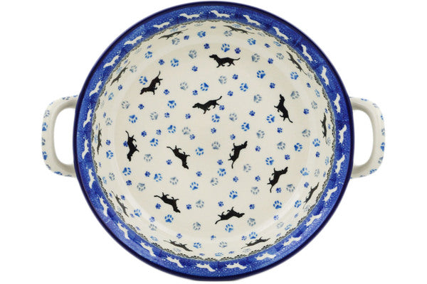 This Dancing Dachshunds Medium Round Baker with Handles was handmade and hand decorated in Boleslawiec, Poland by skilled artisans according to old traditional methods. This Polish stoneware is microwave, dishwasher, freezer, and oven safe up to 480°F. It does not contain lead or cadmium. It is part of the Dancing Dachshunds Collection.