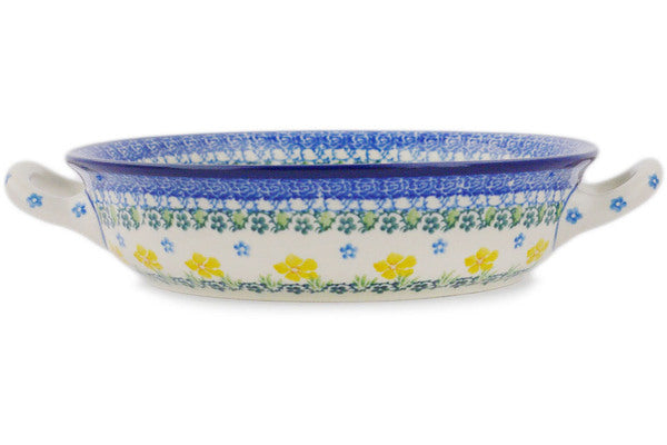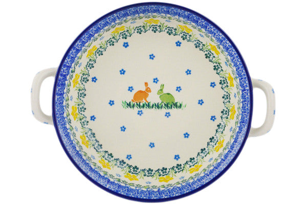 This Happy Hares Medium Round Baker with Handles was handmade and hand decorated in Boleslawiec, Poland by skilled artisans according to old traditional methods. This Polish stoneware is microwave, dishwasher, freezer, and oven safe up to 480°F. It does not contain lead or cadmium. It is part of the Happy Hares Collection.