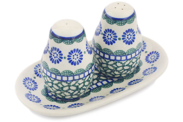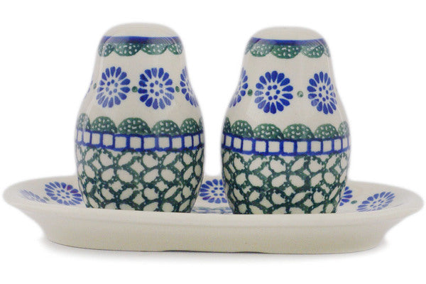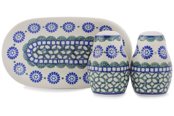 This Maia 7" Salt and Pepper 3-Piece Set was handmade and hand decorated in Boleslawiec, Poland by skilled artisans according to old traditional methods. This Polish stoneware is microwave, dishwasher, freezer, and oven safe up to 480°F. It does not contain lead or cadmium. It is part of the Maia Collection.