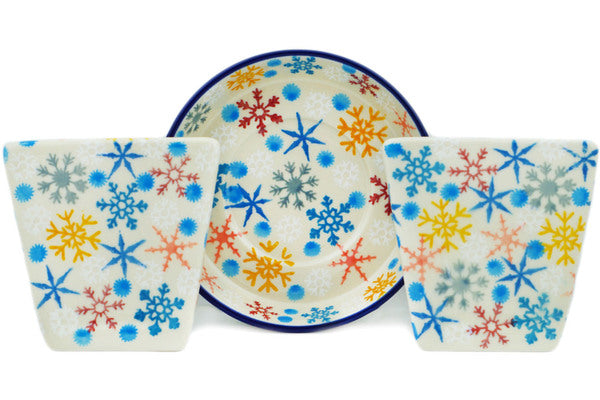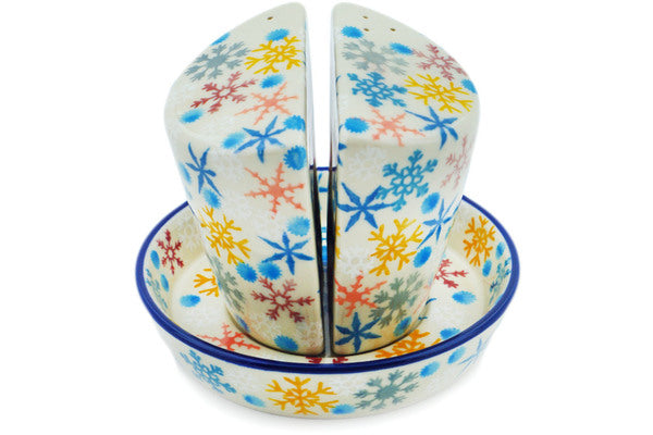 This Vintage Snow Fall 4" Salt and Pepper Set was handmade and hand decorated in Boleslawiec, Poland by skilled artisans according to old traditional methods. This is a Polish pottery Signature Unikat, which means that it has been hand painted with both sponges and brushes and it is signed by the artist who painted it. Unikat pieces are the most intricate works of art. Larger Unikat items take hours of very careful work to finish. This Polish stoneware is microwave, dishwasher, freezer, and oven safe up to 480°F. It does not contain lead or cadmium. It is part of the Vintage Snow Fall Collection.