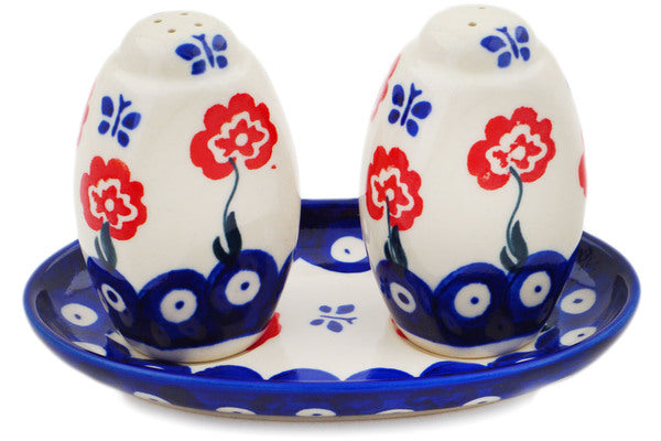 This Blue Eye Spring 5" Salt and Pepper Set was handmade and hand decorated in Boleslawiec, Poland by skilled artisans according to old traditional methods. This Polish stoneware is microwave, dishwasher, freezer, and oven safe up to 480°F. It does not contain lead or cadmium. It is part of the Blue Eye Spring Collection.