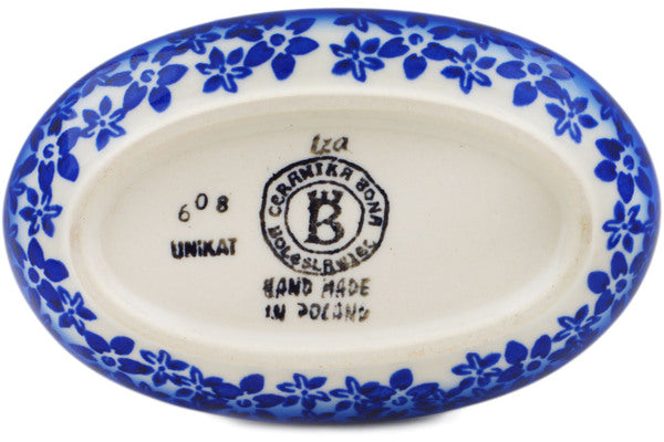 This Divine Cobalt 5" Salt and Pepper Set was handmade and hand decorated in Boleslawiec, Poland by skilled artisans according to old traditional methods. This is a Polish pottery Signature Unikat, which means that it has been hand painted with both sponges and brushes and it is signed by the artist who painted it. Unikat pieces are the most intricate works of art. Larger Unikat items take hours of very careful work to finish. This Polish stoneware is microwave, dishwasher, freezer, and oven safe up to 480°F. It does not contain lead or cadmium. It is part of the Divine Cobalt Collection.