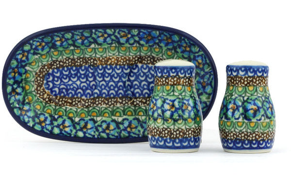 This Mardi Gras 5" Salt and Pepper Set was handmade and hand decorated in Boleslawiec, Poland by skilled artisans according to old traditional methods. This is a Polish pottery Signature Unikat, which means that it has been hand painted with both sponges and brushes and it is signed by the artist who painted it. Unikat pieces are the most intricate works of art. Larger Unikat items take hours of very careful work to finish. This Polish stoneware is microwave, dishwasher, freezer, and oven safe up to 480°F. It does not contain lead or cadmium. It is part of the Mardi Gras Collection.