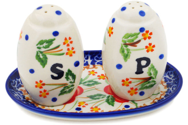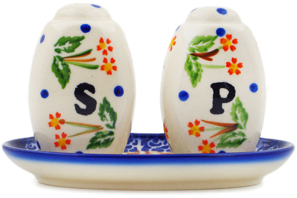 This Vermilion Clusters 5" Salt and Pepper Set was handmade and hand decorated in Boleslawiec, Poland by skilled artisans according to old traditional methods. This Polish stoneware is microwave, dishwasher, freezer, and oven safe up to 480°F. It does not contain lead or cadmium. It is part of the Vermilion Clusters Collection.