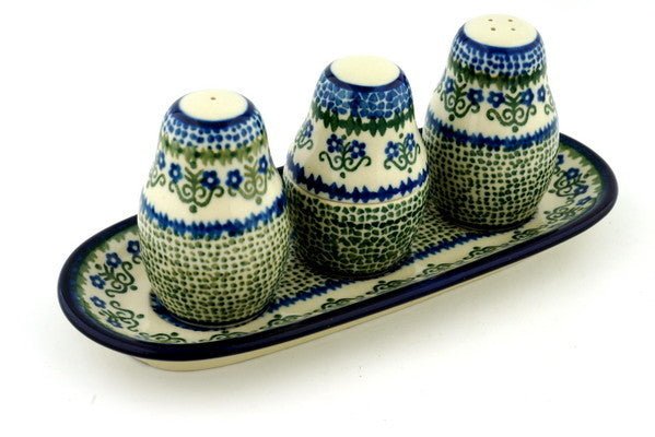 This Fanciful Daisy 10" Salt and Pepper with Toothpick Holder was handmade and hand decorated in Boleslawiec, Poland by skilled artisans according to old traditional methods. This Polish stoneware is microwave, dishwasher, freezer, and oven safe up to 480°F. It does not contain lead or cadmium. It is part of the Fanciful Daisy Collection.