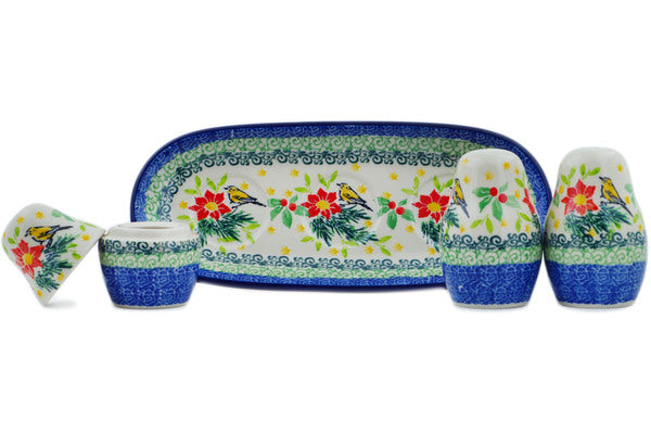This Festive Avian Delight 10" Salt and Pepper with Toothpick Holder was handmade and hand decorated in Boleslawiec, Poland by skilled artisans according to old traditional methods. This is a Polish pottery Signature Unikat, which means that it has been hand painted with both sponges and brushes and it is signed by the artist who painted it. Unikat pieces are the most intricate works of art. Larger Unikat items take hours of very careful work to finish. This Polish stoneware is microwave, dishwasher, freezer, and oven safe up to 480°F. It does not contain lead or cadmium. It is part of the Festive Avian Delight Collection.