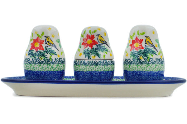 Salt and Pepper with Toothpick Holder 10" Festive Avian Delight Theme UNIKAT