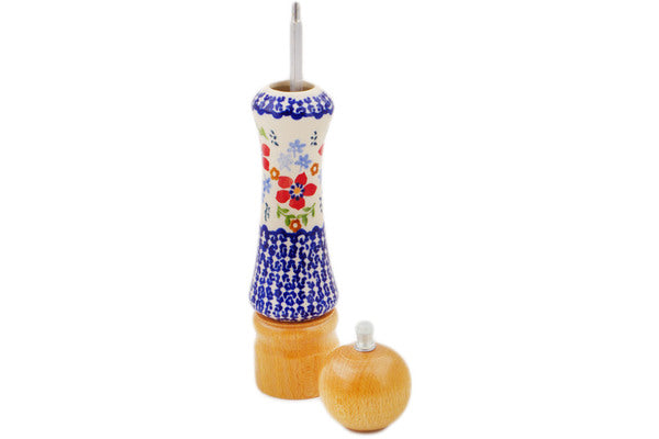 This Red Flower Meadow 8" Salt Grinder was handmade and hand decorated in Boleslawiec, Poland by skilled artisans according to old traditional methods. This Polish stoneware is microwave, dishwasher, freezer, and oven safe up to 480°F. It does not contain lead or cadmium. It is part of the Red Flower Meadow Collection.