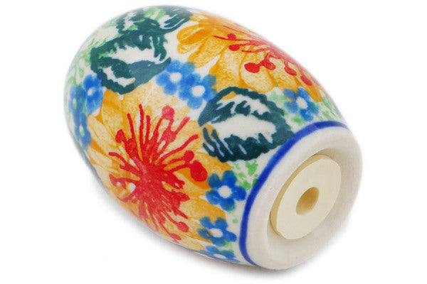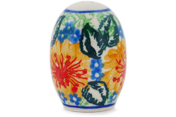 This Marigold Chain 2-inch Salt Shaker was handmade and hand decorated in Boleslawiec, Poland by skilled artisans according to old traditional methods. This is a Polish pottery Signature Unikat, which means that it has been hand painted with both sponges and brushes and it is signed by the artist who painted it. Unikat pieces are the most intricate works of art. Larger Unikat items take hours of very careful work to finish. This Polish stoneware is microwave, dishwasher, freezer, and oven safe up to 480°F. It does not contain lead or cadmium. It is part of the Marigold Chain Collection.