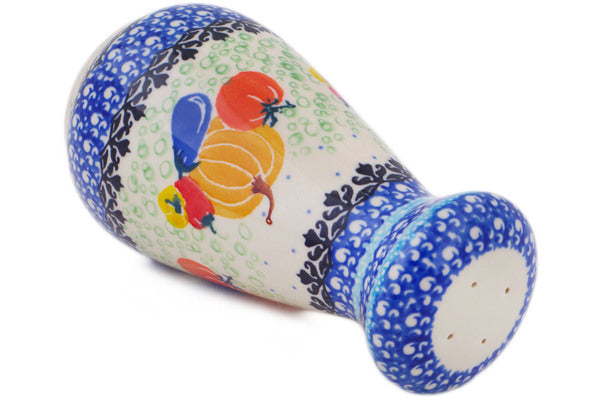 This Glorious Sequence 6" Salt Shaker was handmade and hand decorated in Boleslawiec, Poland by skilled artisans according to old traditional methods. This is a Polish pottery Signature Unikat, which means that it has been hand painted with both sponges and brushes and it is signed by the artist who painted it. Unikat pieces are the most intricate works of art. Larger Unikat items take hours of very careful work to finish. This Polish stoneware is microwave, dishwasher, freezer, and oven safe up to 480°F. It does not contain lead or cadmium. It is part of the Glorious Sequence Collection.