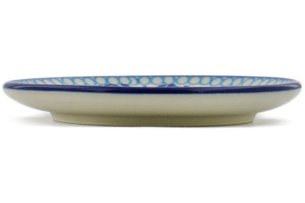 This Blue Ice 4" Saucer was handmade and hand decorated in Boleslawiec, Poland by skilled artisans according to old traditional methods. This Polish stoneware is microwave, dishwasher, freezer, and oven safe up to 480°F. It does not contain lead or cadmium. It is part of the Blue Ice Collection.