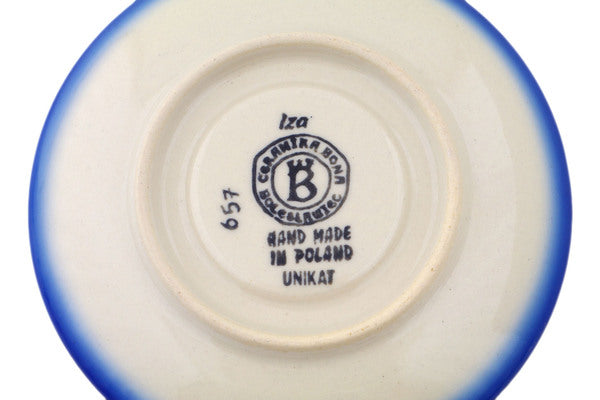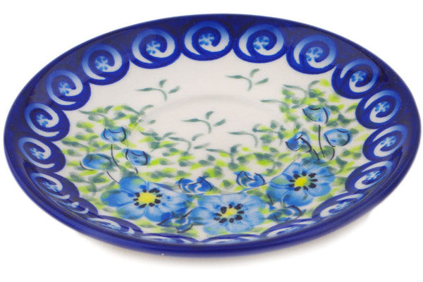This Gorgeous Morning Glory 6" Saucer was handmade and hand decorated in Boleslawiec, Poland by skilled artisans according to old traditional methods. This is a Polish pottery Signature Unikat, which means that it has been hand painted with both sponges and brushes and it is signed by the artist who painted it. Unikat pieces are the most intricate works of art. Larger Unikat items take hours of very careful work to finish. This Polish stoneware is microwave, dishwasher, freezer, and oven safe up to 480°F. It does not contain lead or cadmium. It is part of the Gorgeous Morning Glory Collection.