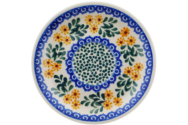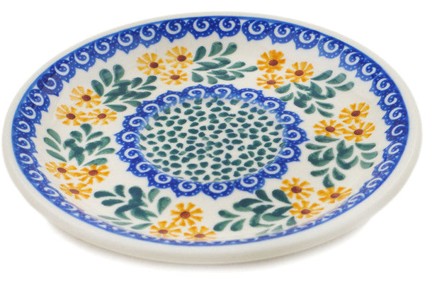 This Summer Day 6" Saucer was handmade and hand decorated in Boleslawiec, Poland by skilled artisans according to old traditional methods. This Polish stoneware is microwave, dishwasher, freezer, and oven safe up to 480°F. It does not contain lead or cadmium. It is part of the Summer Day Collection.