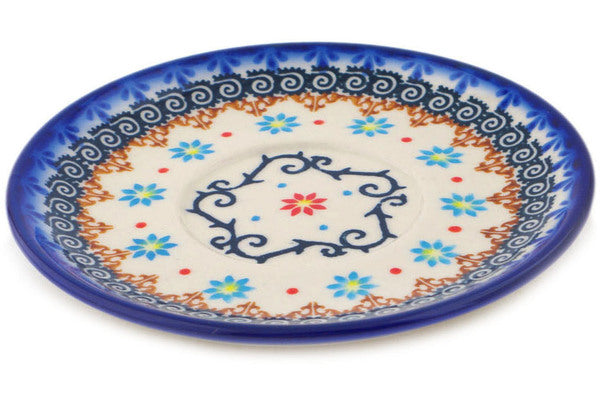 This Sunflower Dance 6" Saucer was handmade and hand decorated in Boleslawiec, Poland by skilled artisans according to old traditional methods. This Polish stoneware is microwave, dishwasher, freezer, and oven safe up to 480°F. It does not contain lead or cadmium. It is part of the Sunflower Dance Collection.